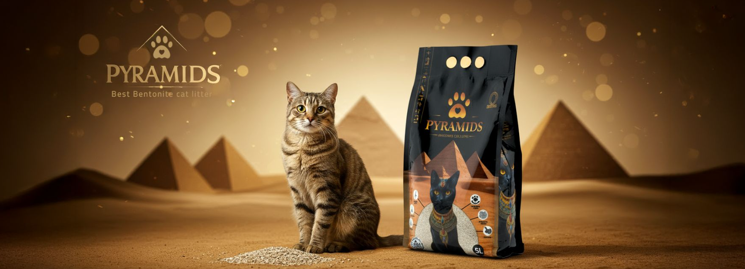 Pyramids Cat Litter – رمل قطط فاخر بجودة عالية وامتصاص فائق للروائح والرطوبة. مصنوع من مواد طبيعية 100% ليمنح قطتك نظافة ملوكية وراحة تدوم طوال اليوم.